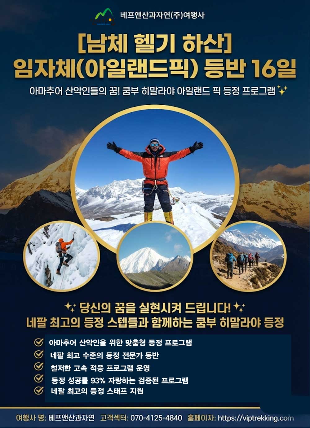 2. 임자체 등반 예비일을 운영하지 않고 카트만두 조기 귀환시 추가 체류비용이 발생될 수 있습니다.