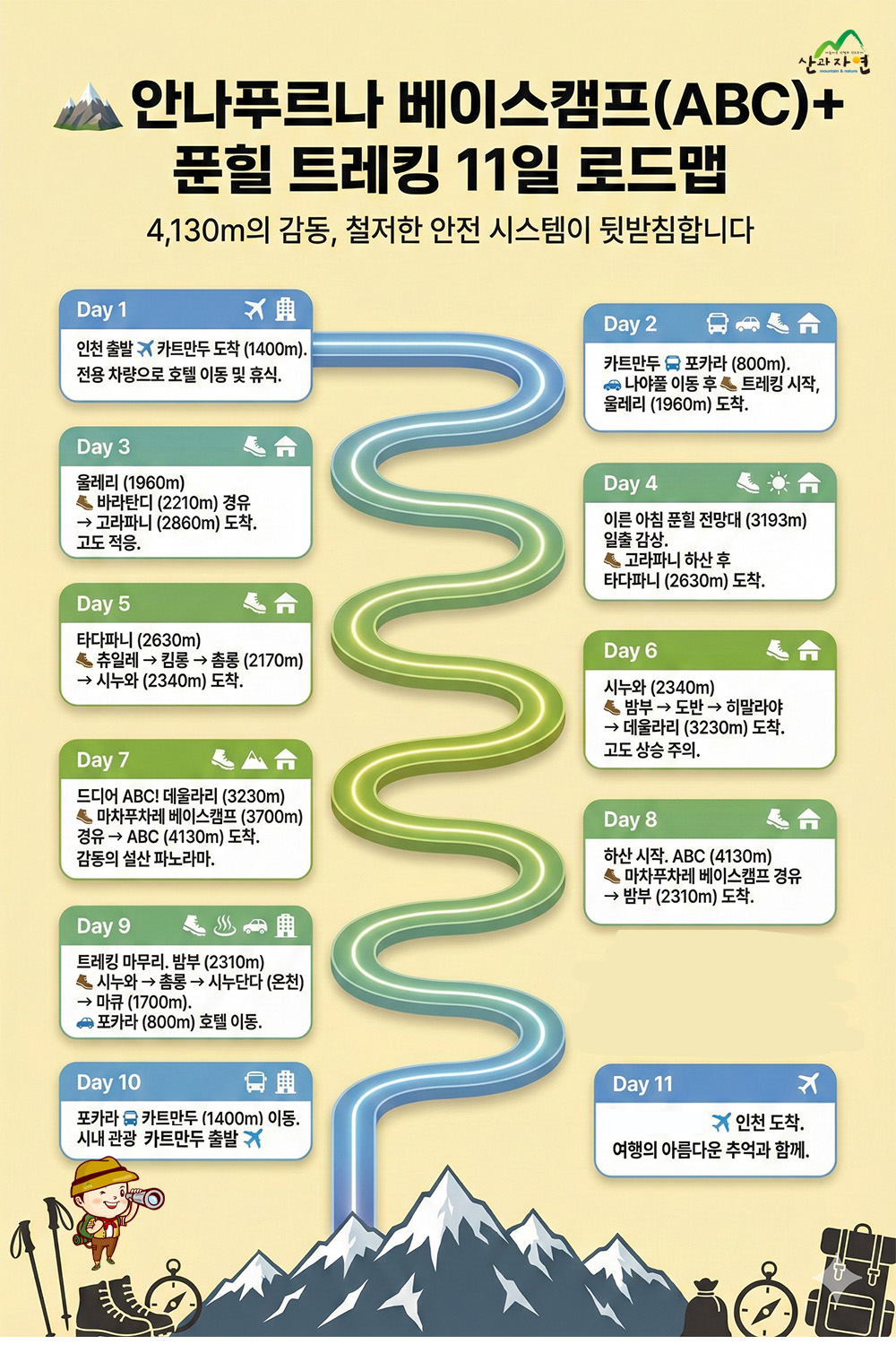 베프앤산과자연 여행사 [트레킹 일자별 고도 및 거리 참고]
