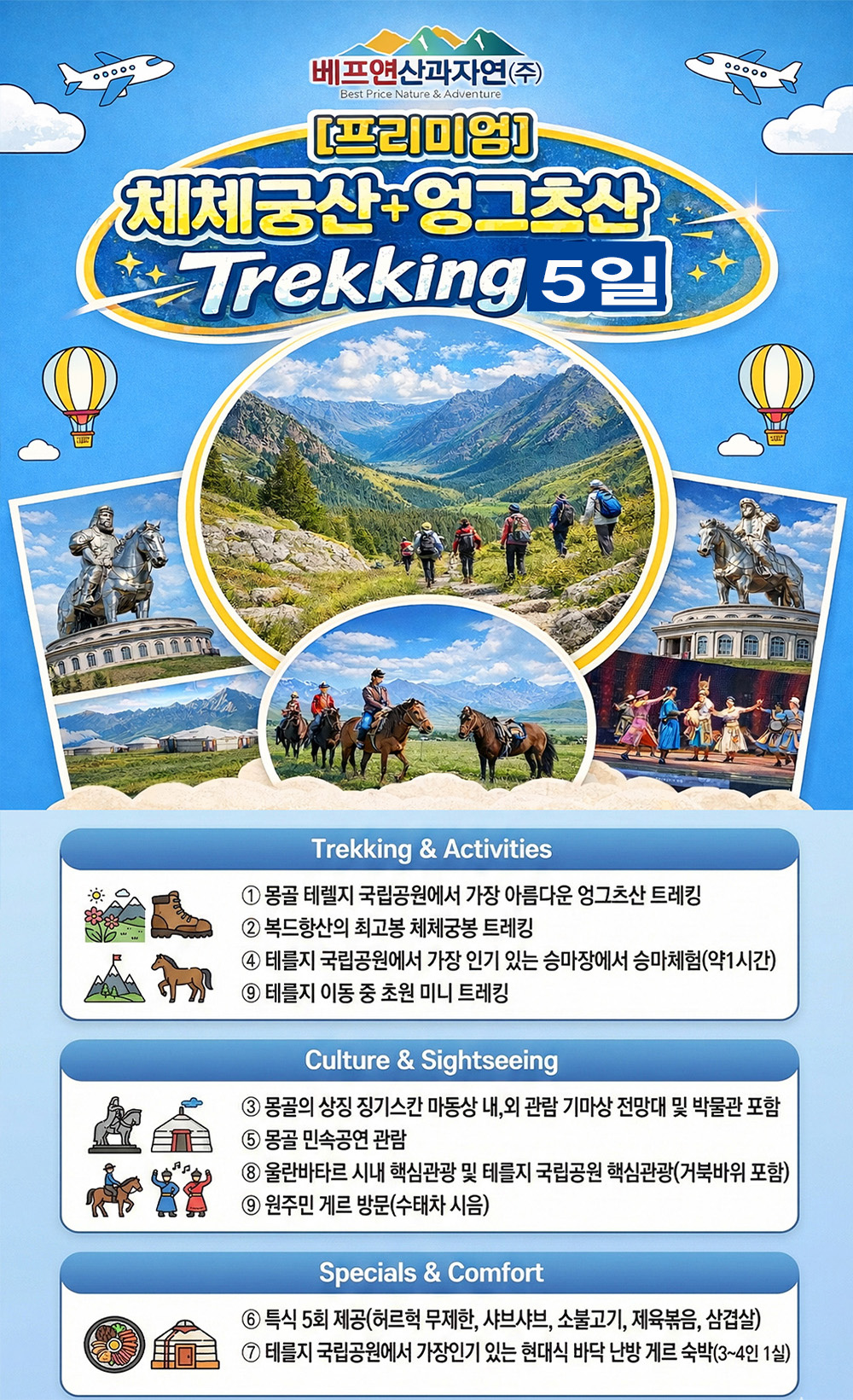 [부산출발] 체체궁산+엉그츠산Trekking 5일">