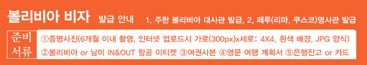 - 예약 시점에 따라 남미내 항공권이 당사에서 책정한 기준요금보다 증가하는 경우 추가부담 할 수 있습니다