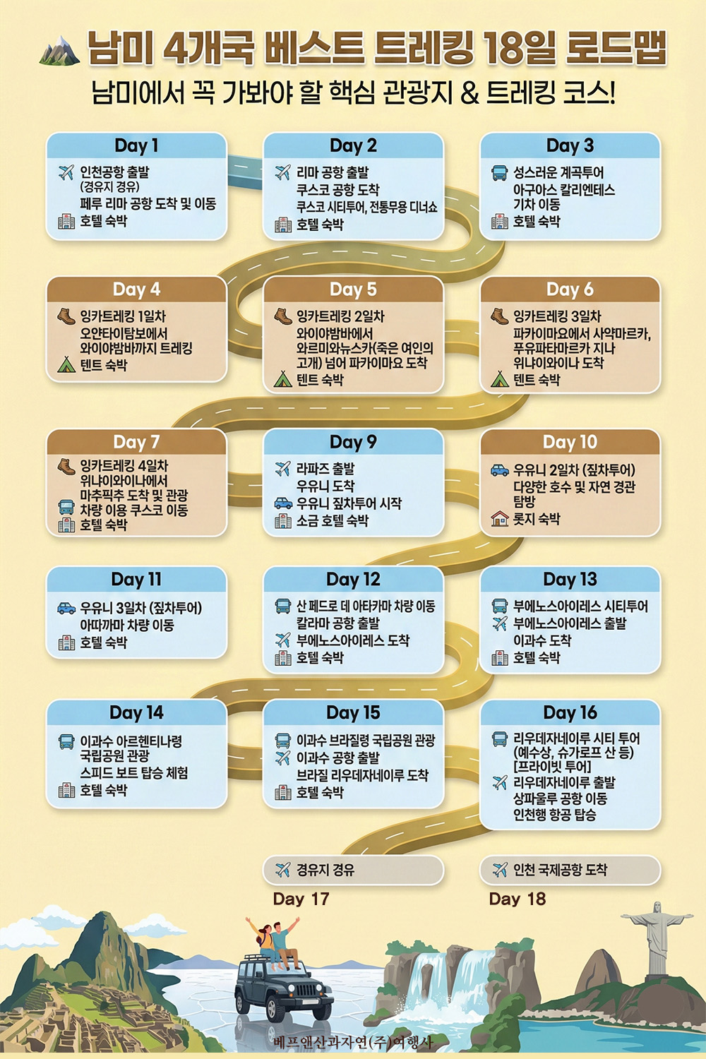 ▶ 중남미 상품은 항공 이동이 많아 항공 좌석상황에 따라 일정이나 항공 여정의 변동이 많습니다.