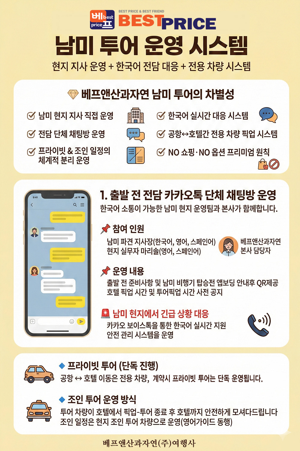 - 투어예약과정에서 발생하는 모든 문제(투어일자, 차량 등의 오류 등)