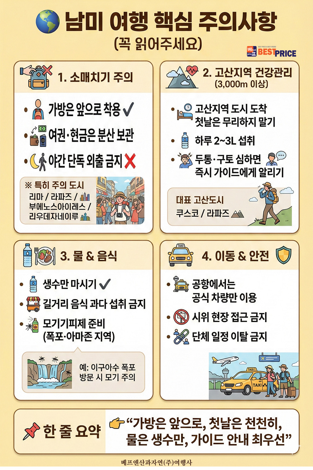 - 남미지역은 안전등 기타상의 문제로 자신의 신체, 재산에 대한 안전사고에 대한 빈도수가 타 대륙에 비해 높은 지역입니다