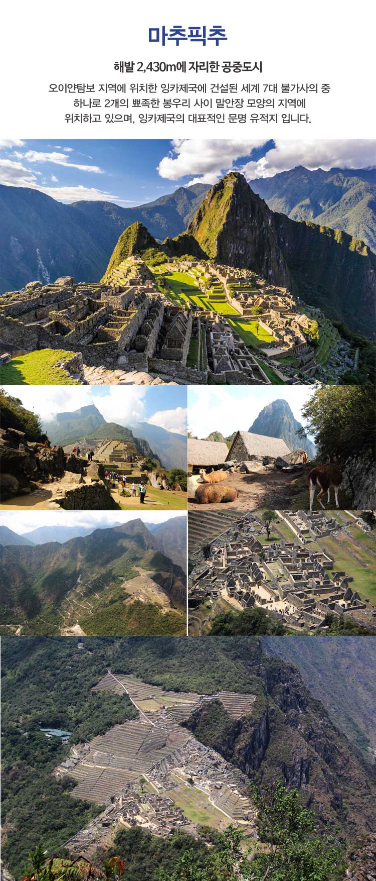 ▶ 장거리 비행과 버스이동 및 고산지대 일정이 있는 상품으로 여행 전 체력/건강상태 등이 충분히 고려되어야합니다.