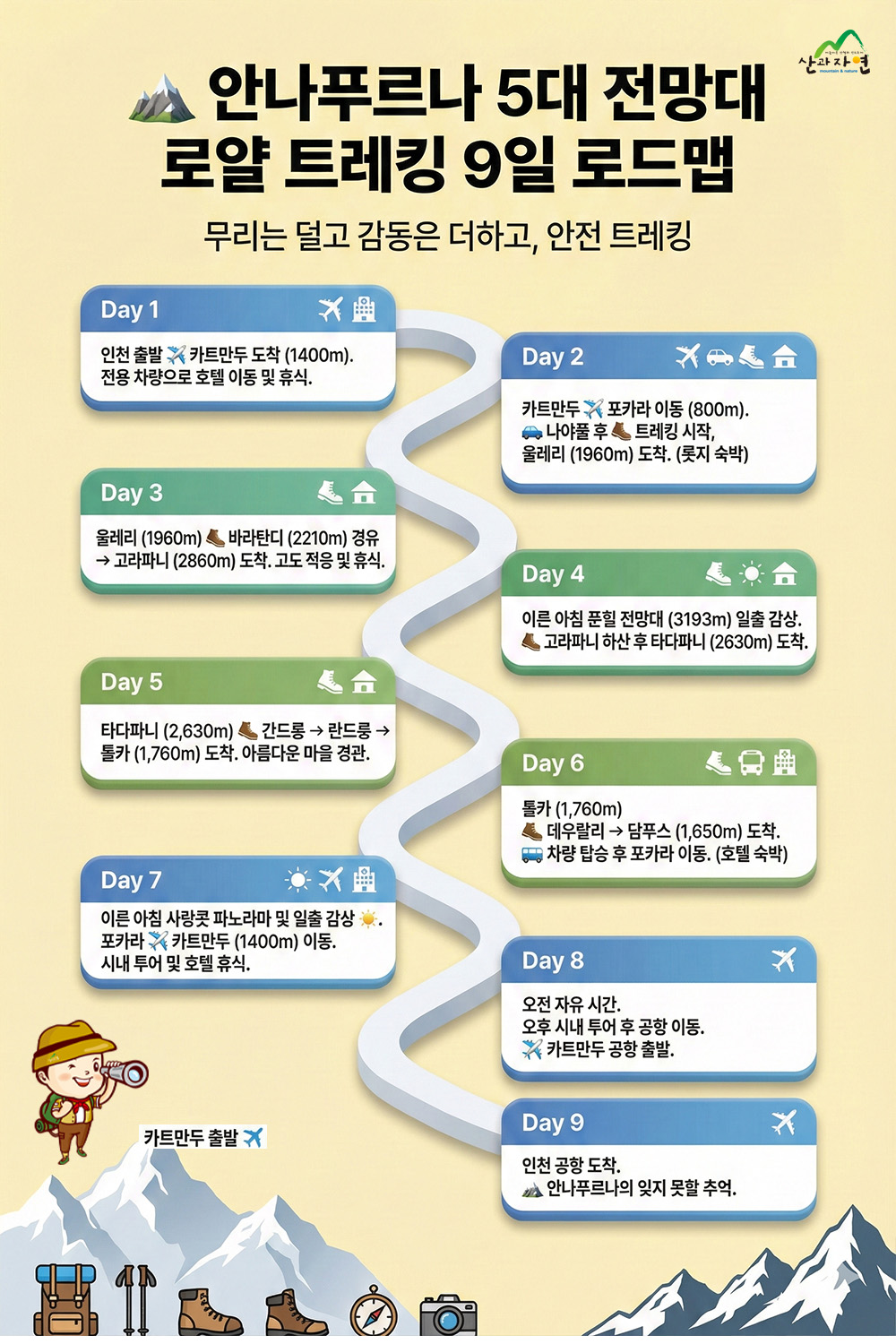 - 여행개시 8일전(9~8)까지 통보시 : 국내선(카트만두-포카라 항공) 취소 수수료 100$여행경비의 50% 취소 수수료 발생